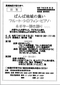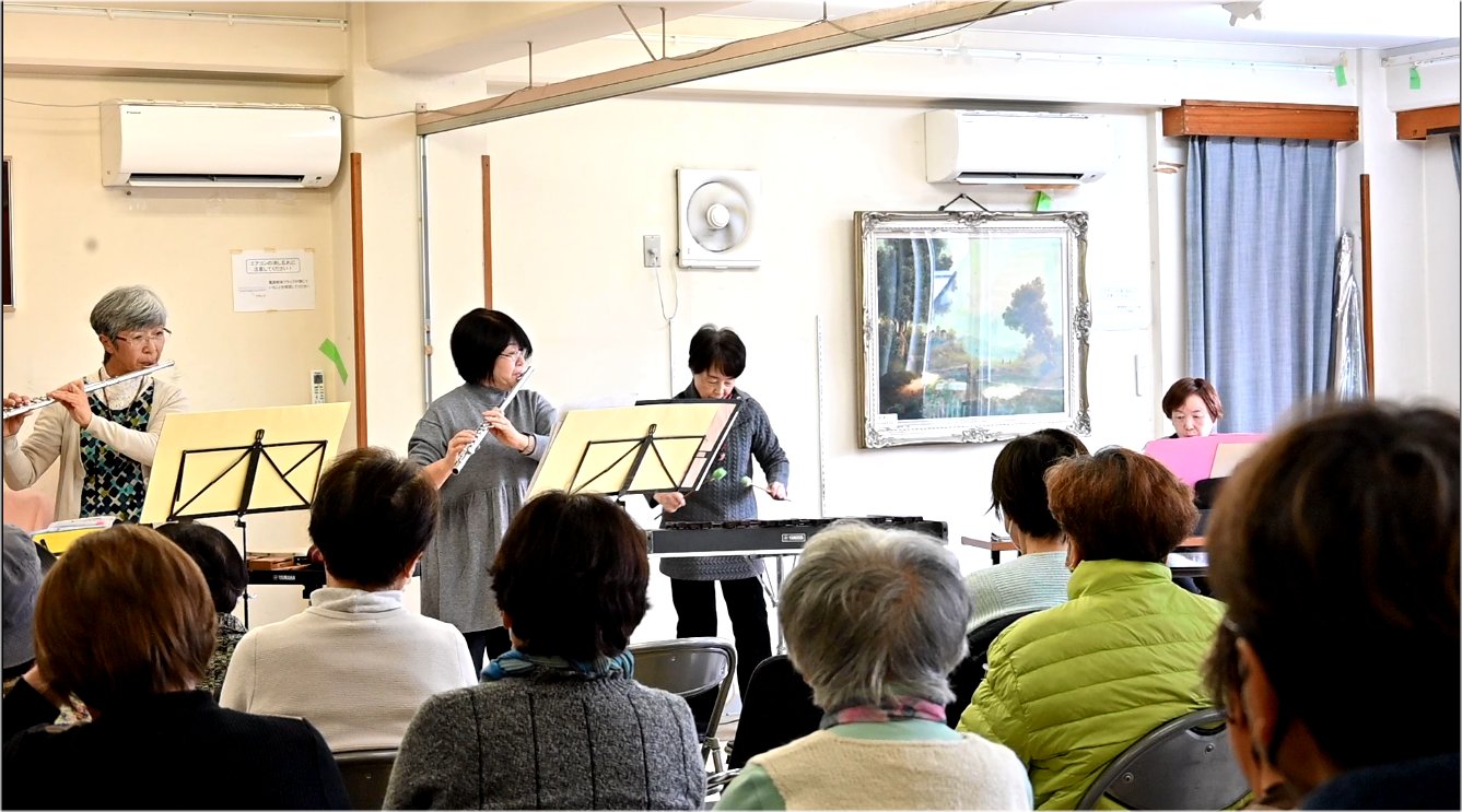 今年の地域の集いは、地区回覧でお知らせのとおり、第1部は”おたまじゃくし”の皆様による、フルート、シロフォン、ピアノの演奏会がおこなわれました。