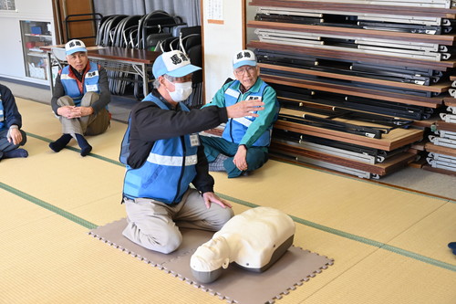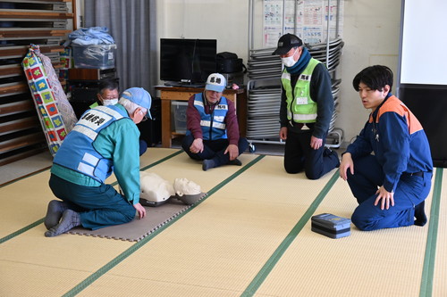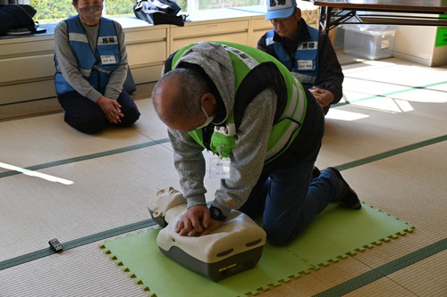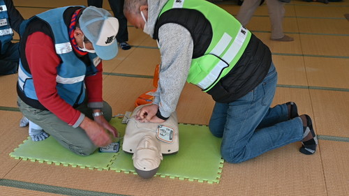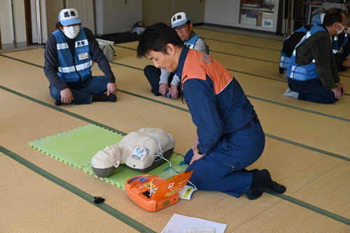 @緊急時の心肺蘇生とAED使用についての体験講習と異物除去、止血法学習