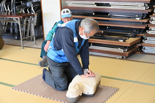 今回は、「自主防災会員、町内会長」を中心に、「普通救命講習会」を開催し、約20名の方が参加しました。