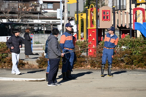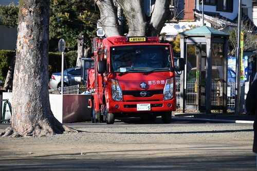 第5分団員と消防車が待機します。放水確認もOK.