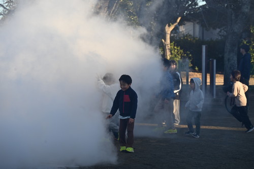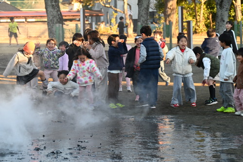 立ち上る水蒸気に、子どもたちは大喜び。